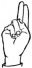 На ћирилици написано УРОШ ГРУБНИЋ састоји се из 11 слова [?]. Исписано ћириличном једноручном азбуком за глувонеме: